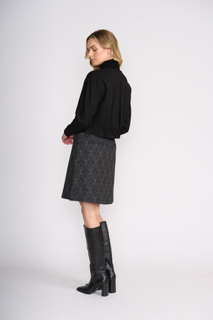 The Soft Cinch Jacket is a new, crop cut jacket, perfect for dressier events like dinner out, work events, or winter weddings. We love the textured fabric and also, the raw cut pocket detail on the front.