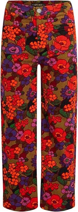 These vintage-inspired Bob Pants Ramone feature a high waist and wide-leg silhouette for a playful, flattering fit. Made from comfy cotton with a touch of stretch, they boast a floral pattern and belt loops, finished with button and zipper closure for easy wear. Perfect for fun, stylish days!