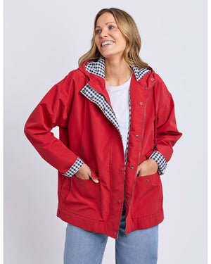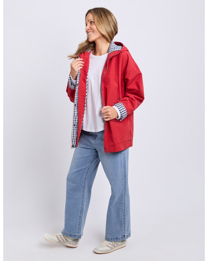 The Elm Bari Raincoat blends functional outerwear with statement style. Featuring exclusive Bari print artwork with a playful polka dot facing, this relaxed-fit raincoat is crafted from coated PVC and finished with practical front pockets. perfect for staying dry in style.