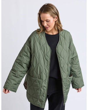 The Elm Dusty Jacket is a cosy outer layer featuring textured onion stitching and warm fill for cooler days. Designed in an oversized fit with a clean hidden zip front, it's perfect for everyday layering. Throw it over a tee and relaxed pants for effortless warmth and style.