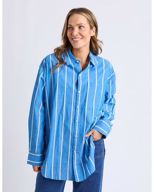 The Elm Mia Striped Shirt is a classic button-through style with a modern oversized fit. Featuring yarn-dyed stripes and a flattering curved hem, it's crafted from breathable cotton for all-day wear. Wear it loose over denim or half-tucked for an easy, polished look.