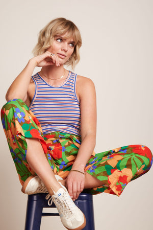 King Louie has brought the most gorgeous vintage-inspired collection to My Friend Alice. The Ava Pants in Therese are the perfect wide legs styles for cool summer wear. In a lightweight, floral fabric, with tie belt and shorter length.