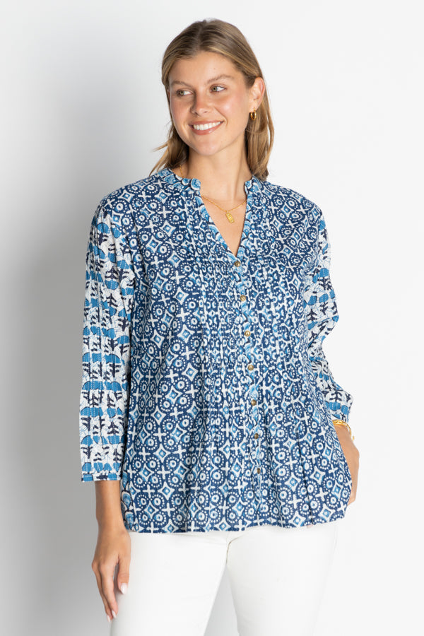 The IBISA Idaho Shirt combines effortless style with everyday comfort. Crafted from 100% breathable cotton, this relaxed-fit blouse features a Nauru collar flowing into a flattering V-neckline, button-through front, and a gently curved hem for a feminine touch. Designed in Australia, it’s the perfect versatile piece to pair with jeans, tailored pants, or skirts for both casual and smart-casual occasions. Lightweight, soft, and timeless, the Idaho Shirt is a wardrobe essential that will keep you looking polished and feeling comfortable all day.