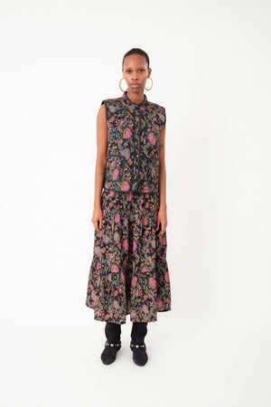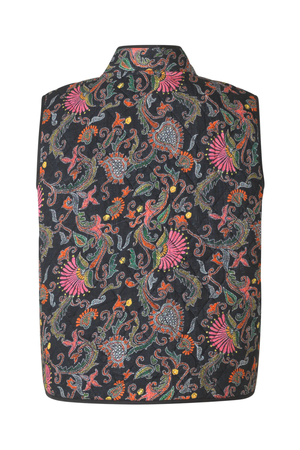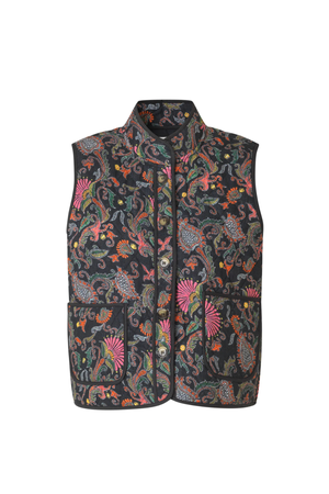 Cairo is a bold statement layer made for lovers of colour and expressive print. Featuring a detailed floral design in warm tones of orange, green and pink against a dark base, this lightly quilted vest adds instant personality to everyday outfits.