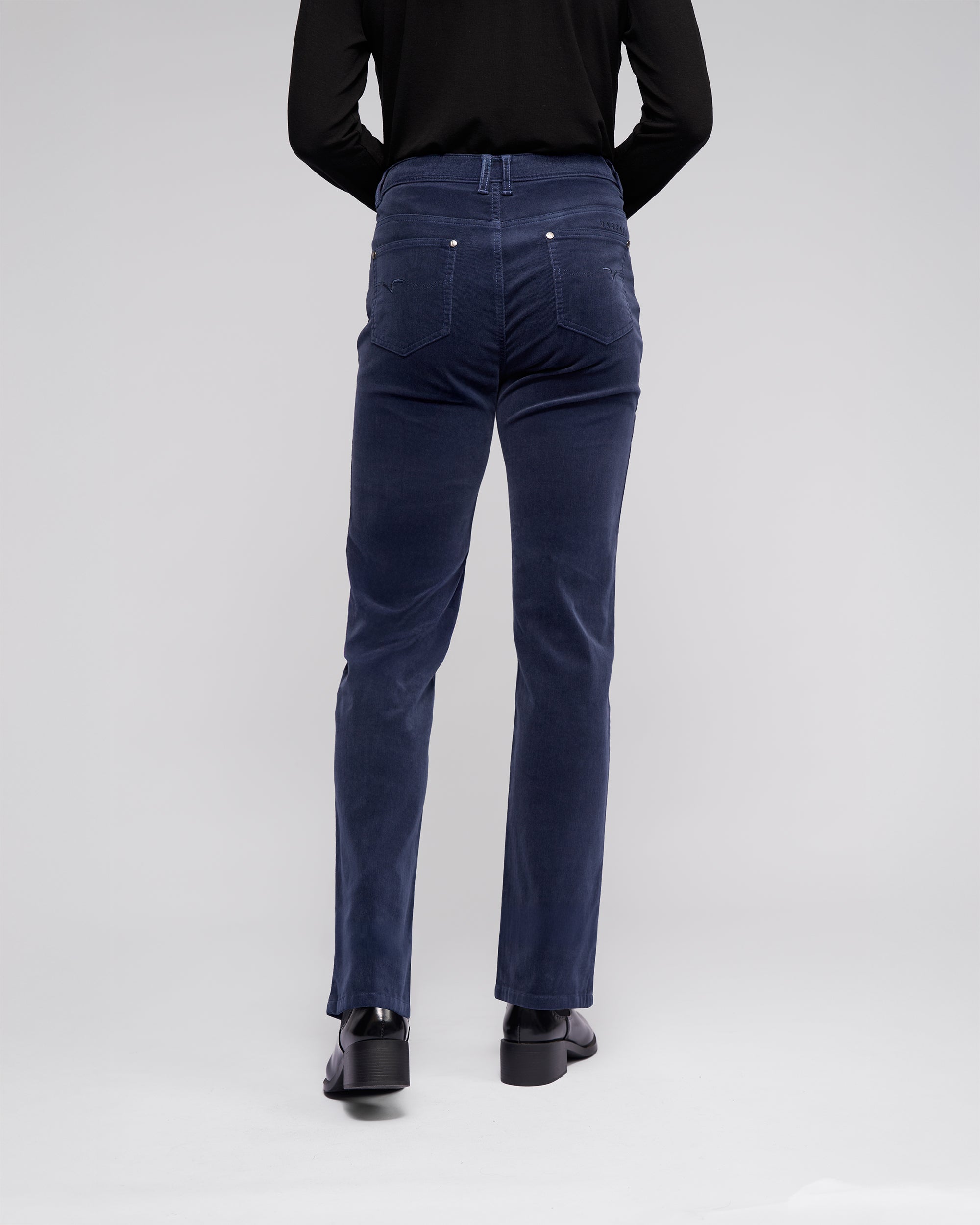 - 'Vassalli' embroidery above wearers right-hand back pocket